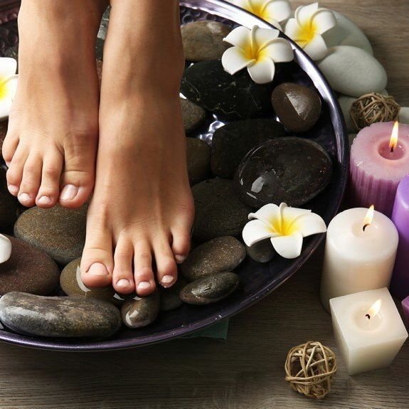 PARAFFIN WAX & HOT STONE TREATMENT: A warm paraffin wax is applied to your feet, helping to deeply soften dry areas. Relax with hot stones, which help improve circulation and promote deep relaxation.